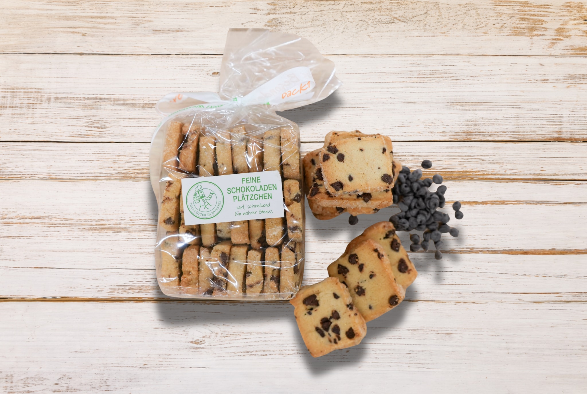 Die Tollkötter Feinen Schokoladenplätzchen bestehen aus Weizenmehl, Kuvertüre, Butter, Puderzucker, Ei, Backpulver und Salz.